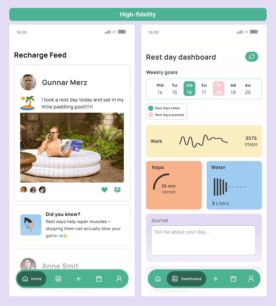 Encouraged by this, we emphasised rest-day sharing in the user flow and added a feature to reflect on how rest impacts mood. These iterations helped align the product more closely with user expectations and emotional needs.